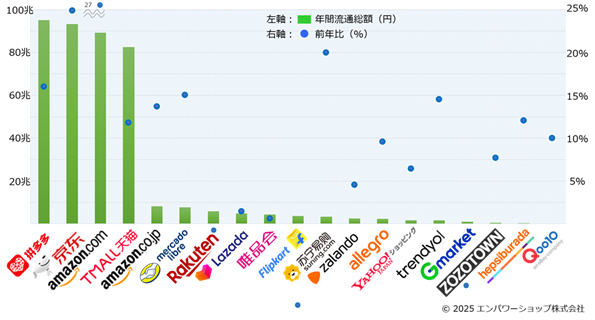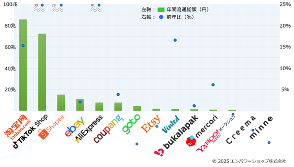2025年時点最新【2024年EC流通総額ランキング】国内14・海外26のECモール・カート・アプリの流通総額から見る市場トレンド