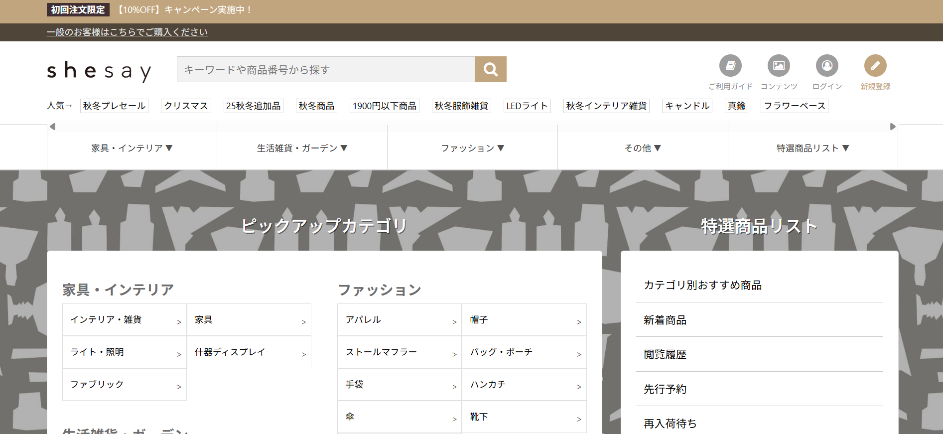 ▼総合 20サービス ▼ファッション 10サービス ▼インテリア・雑貨 9サービス ▼ブランド 1サービス ▼オークション 1サービス ▼生活用品 1サービス ▼文具 1サービス ▼食品 8サービス ▼家電 2サービス ▼美容・健康 21サービス ▼アウトレット(食品) 1サービス ▼アウトレット(ファッション) 1サービス ▼海外(総合) 8サービス ▼海外(ファッション) 1サービス |