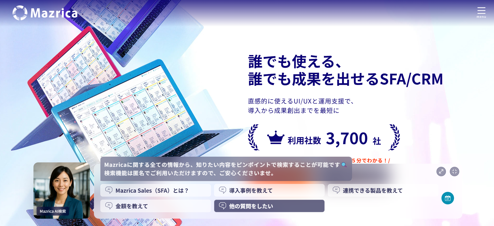▼マーケティング(MA) 14サービス ▼マーケティング(CRM) 12サービス ▼マーケティング(Web接客) 16サービス ▼物流(在庫管理) 2サービス ▼物流(在庫最適化) 1サービス ▼物流(出荷) 1サービス ▼コンテンツ作成 9サービス ▼運用支援(多店舗連携) 3サービス ▼運用支援(受発注業務) 1サービス ▼運用支援(基本業務) 26サービス |