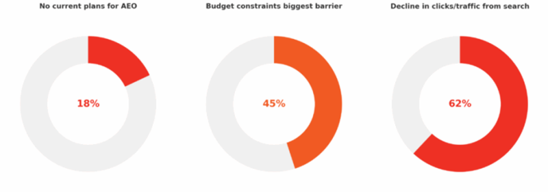 - 45%がAEO戦略を導入する上での最大の障壁として「予算の制約」を挙げており、次いで40%が「社内の専門知識の不足」を挙げている。
