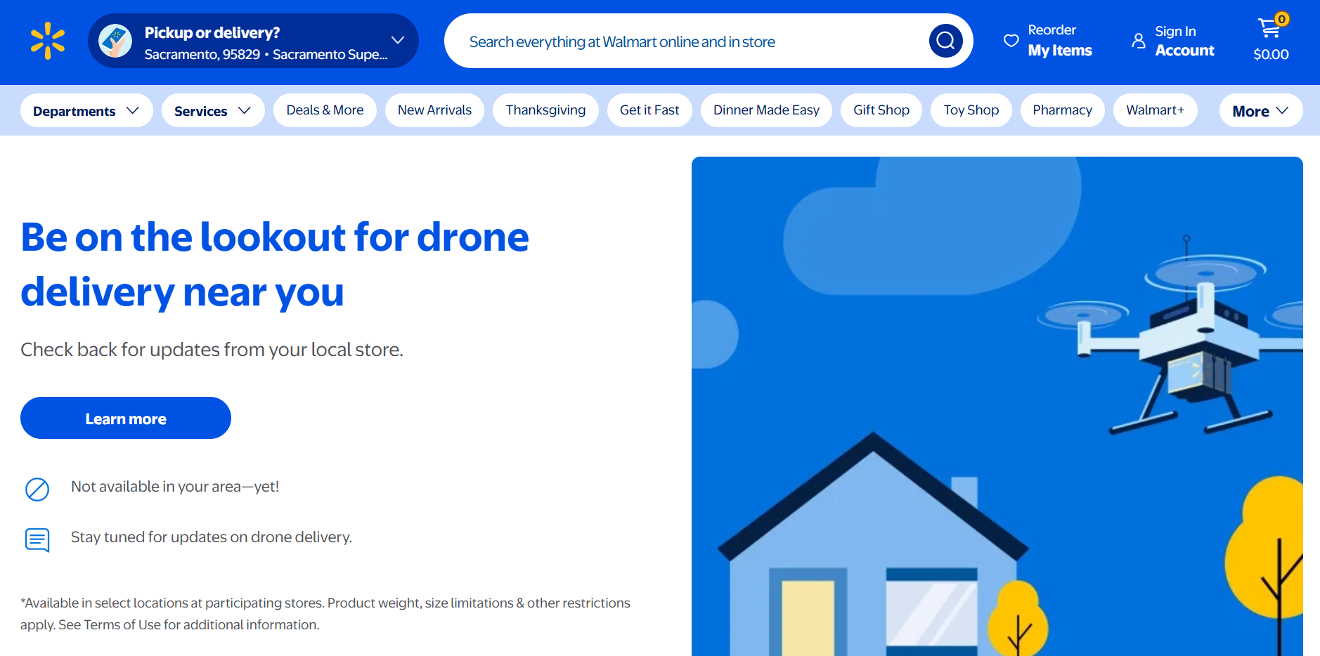 利用者は店舗から6~8マイル圏内に住む必要があり、重量2.1ポンド以下の注文を平均19分で受け取ることが出来る。配送対象の約50%は店舗在庫15万点のうちから選ばれ、卵や果物、アイスクリームなどの生鮮品も含まれる。注文はWalmartアプリのほかWingアプリ経由でも可能で、前庭・裏庭・車道などユーザー指定の場所へ安全に降下配達される。Ziplineが開設したP2ハブでは従来の配送車より静かなドローン配送体験が提供され、深夜配送やInHome配送とも併用される。2025年10月までにドローン配送件数は30万件に達し、6月以降わずか4ヶ月で倍増する急成長を見せている。