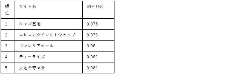 Core Web Vitalsの新指標 INPで優秀なTOP5社