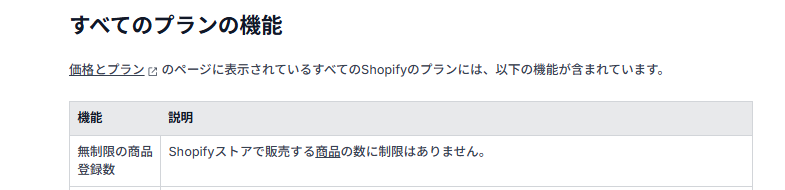 参考:Shopifyの料金プラン – 各プランの詳細情報と比較 – 無料体験 – Shopify 日本