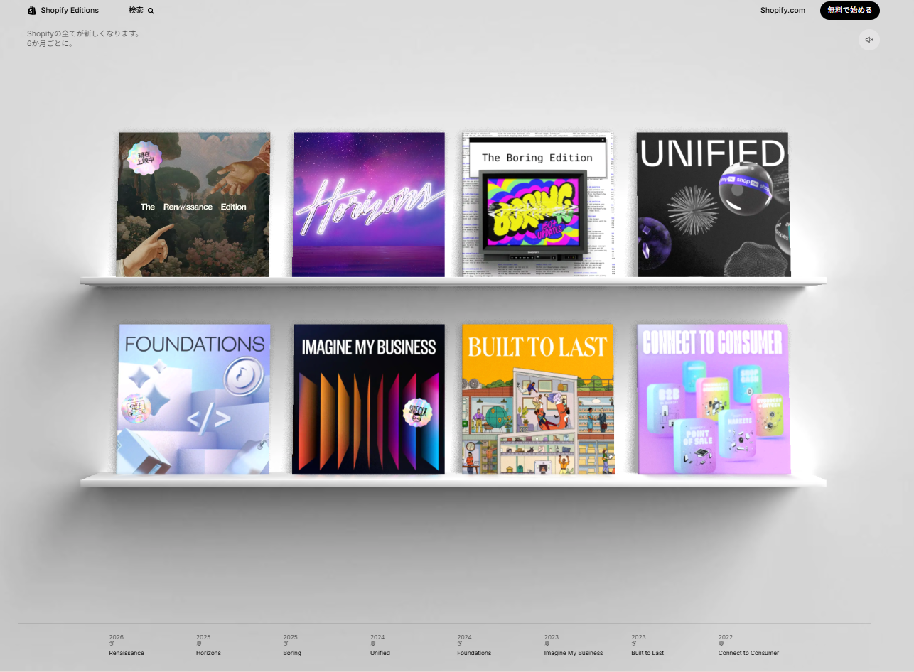 これまで継続的に拡大を続けてきたShopifyは、外部サービス連携や新体制により更なる拡大が期待される。直近のShopifyに関するニュースはShopifyニュースルームから確認することができ、POVとPRODUCTの2種類に分けて記事が掲載されている。2025年1月から12月までには46件のニュースレポートが掲載されている。
