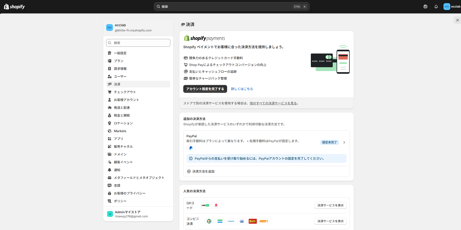 管理画面の「設定」の中から「決済」を選択すると、クレジットカード決済はもちろん、代金引換や銀行振込、ワンクリックの購入を実現させる「Shop Pay」など、多彩な選択肢が用意されている。支払いをチェックアウト完了時に行うか、また注文全体のフルフィルメント完了時に行うかなど支払い確定方法を選択することも可能だ。