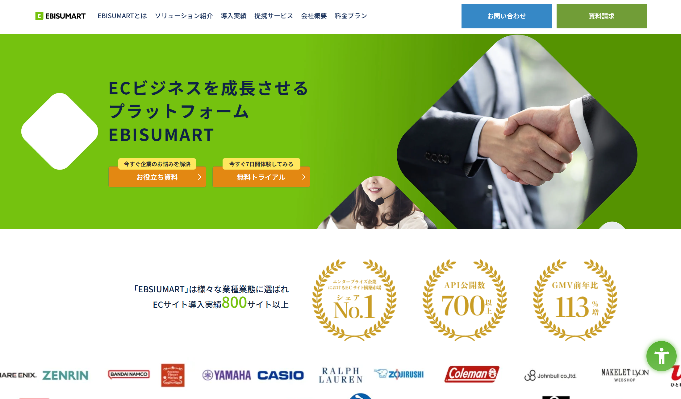 株式会社インターファクトリーが運営するEBISUMARTは、「カスタマイズ対応するクラウド型ECサイト構築サービスで8年連続国内構築実績NO,1」を誇っているECプラットフォームで、業種は問わず、中・大規模事業者向けのサービスとなっている。主な機能としては、1,018を超えるAPIを公開しており、それを用いた柔軟なカスタマイズが出来る他、数多くのアプリとのシステム連携も実施。拡張機能と連携することで売り上げの向上、集客の効率化などECサイトの機能を格段に強化できる。なお、年間拡張機能追加数は32となっている。これらのECサイト強化機能に加え、顧客企業ごとに専任の運用サポート担当者が付き、貴社の作業内容や進捗内容を把握し、最適な運用サポートを実現する。また、ユーザー限定少人数制のワークショップを開催し、他のユーザー企業の運用事例からヒントを得ることで次のステップへ間接的にサポートするイベントも行っている。さらに、ECサイトを守るためのセキュリティ対策はもちろん、ISMS取得といった情報資産のセキュリティを管理するための枠組を策定し、実施も行っている。